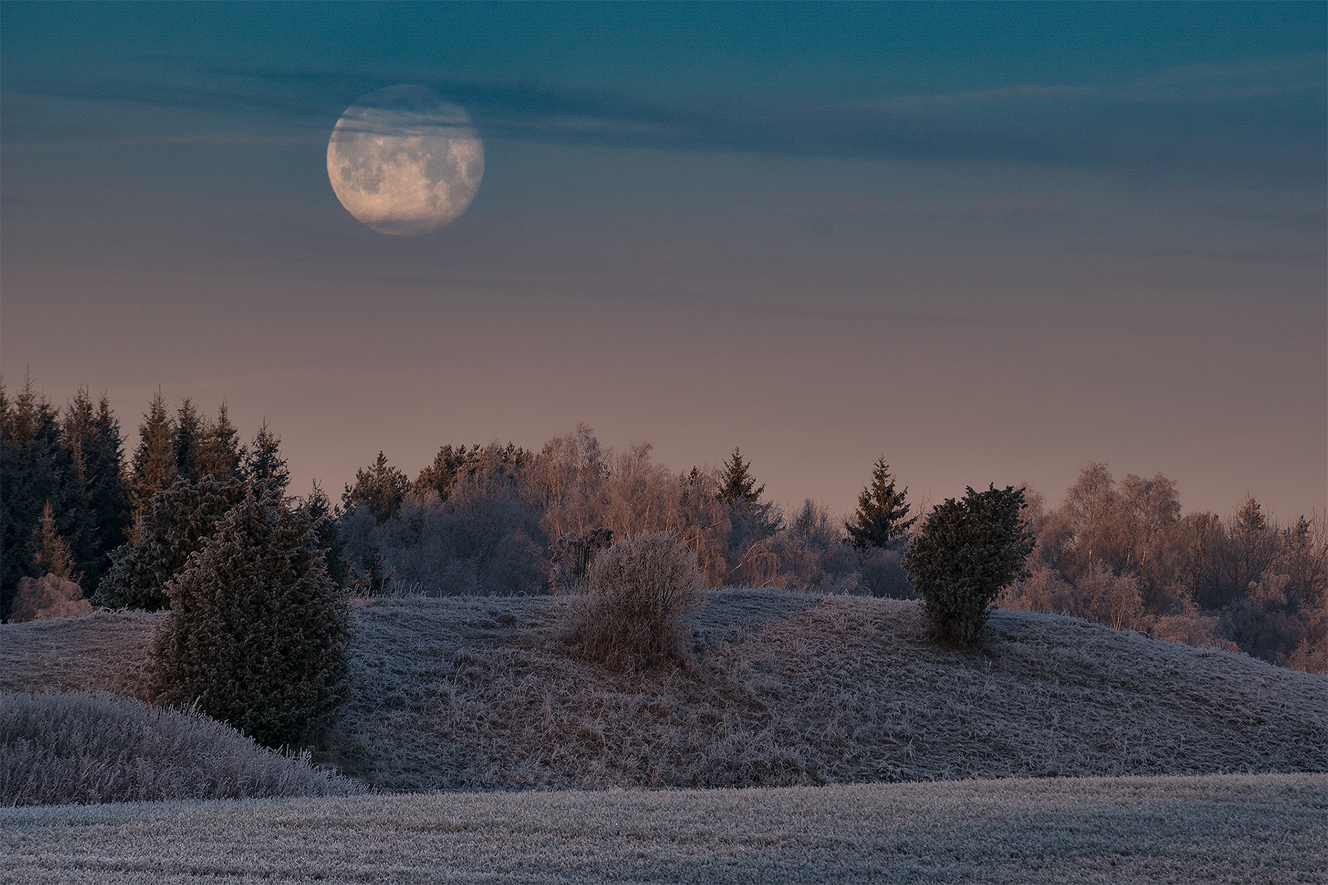 I decided to photograph the rise of the supermoon on the 14th of december but I missed it. So I went out in the morning and shot the moon setting instead. :)