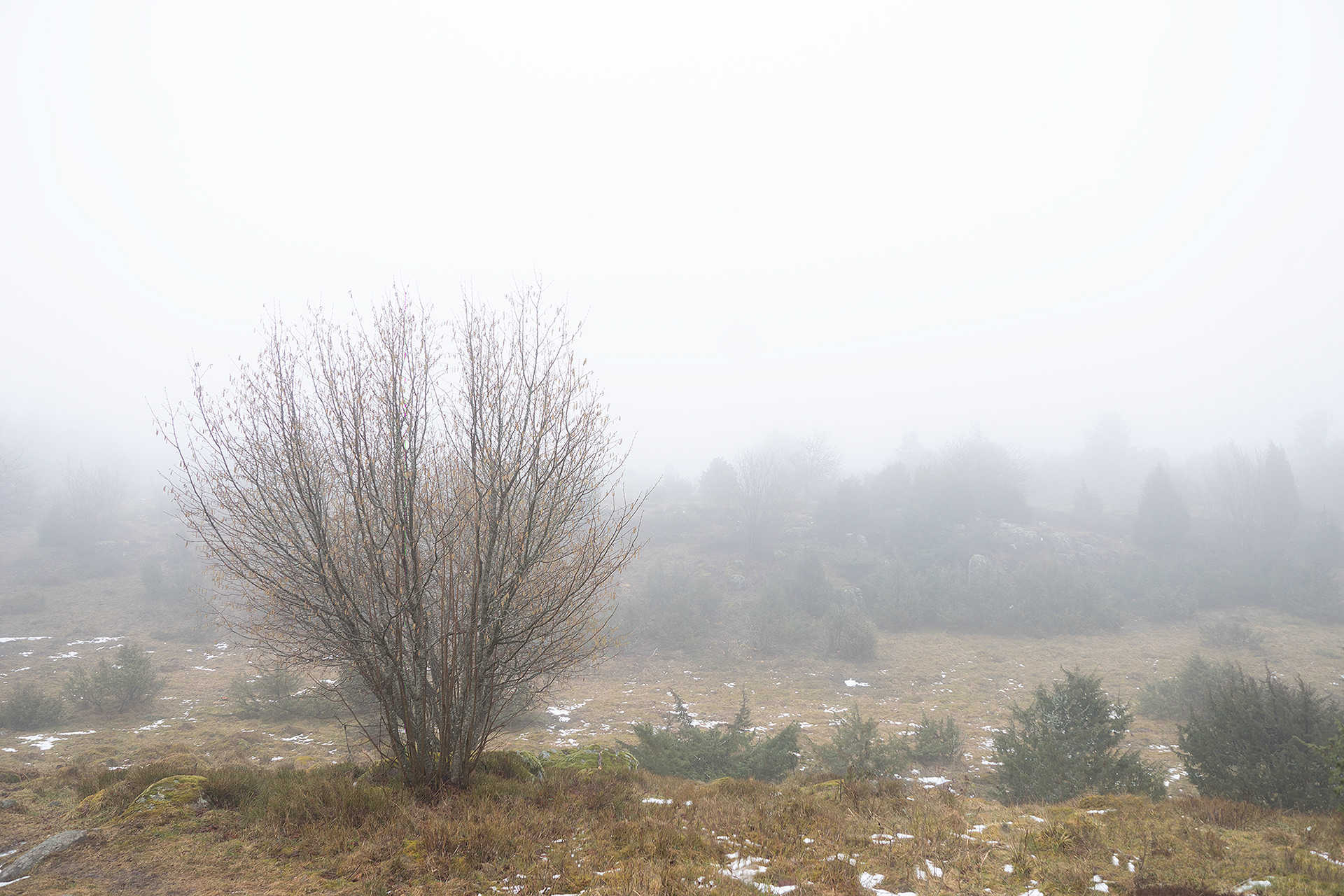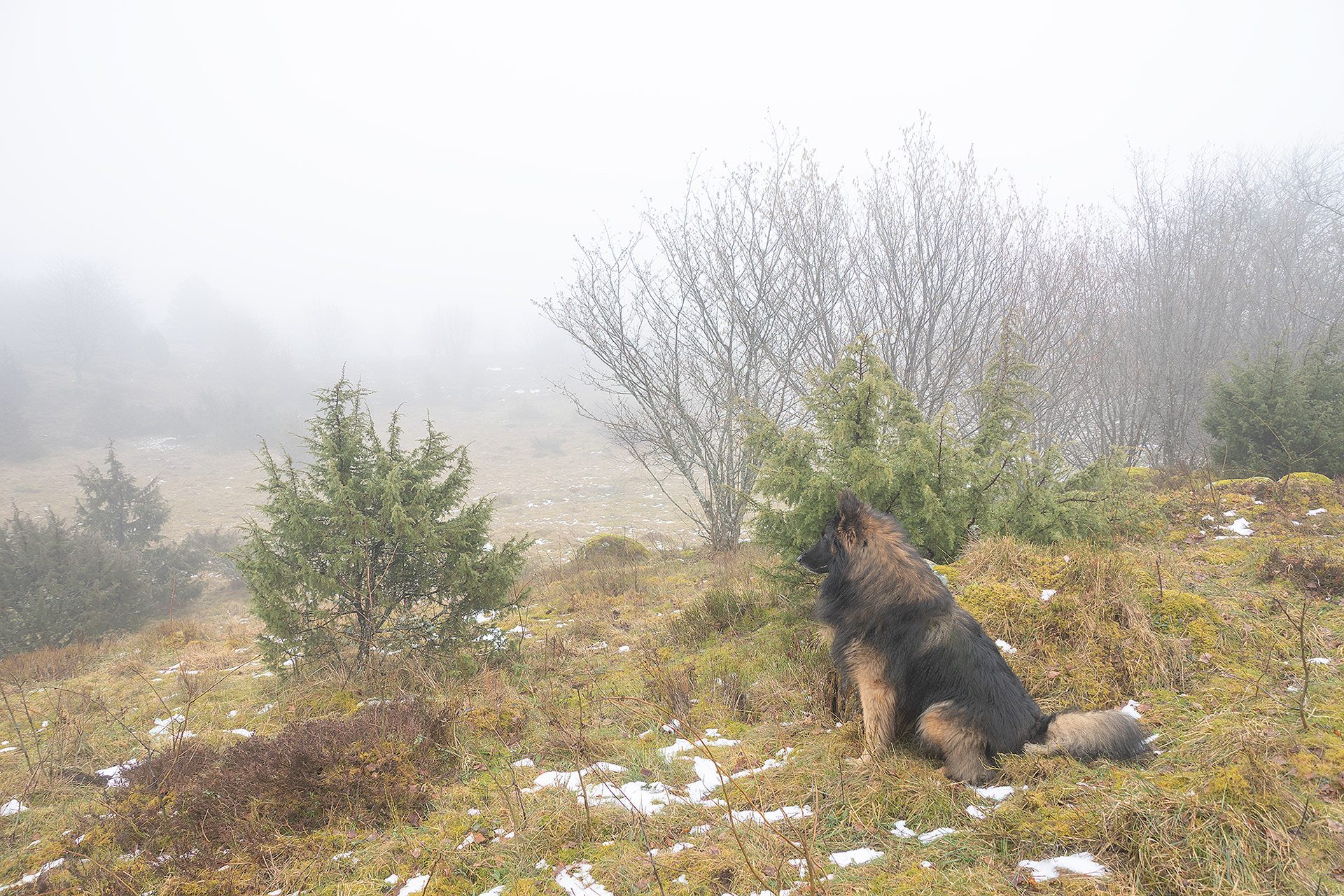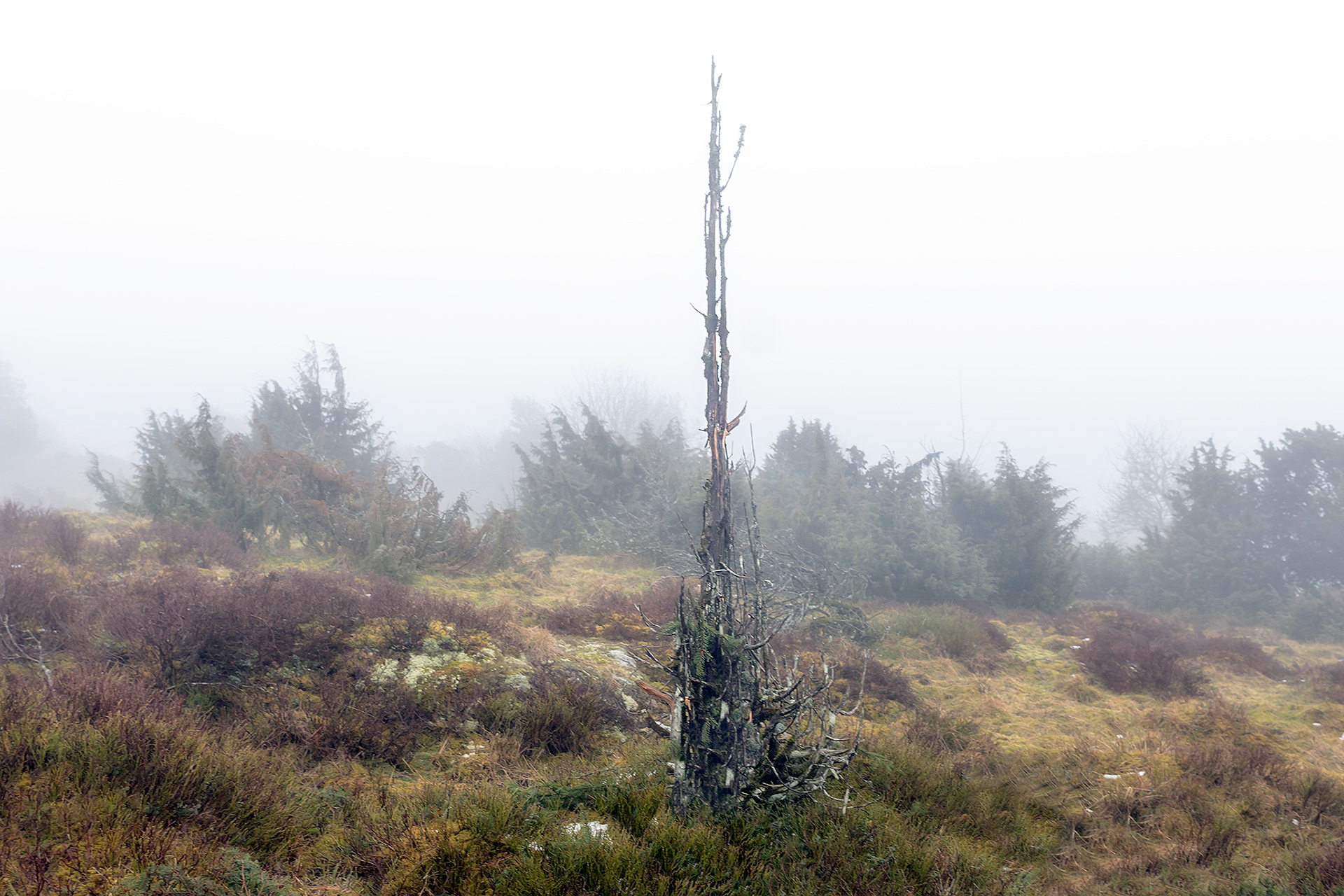 I was on a morning walk with the dogs at a table top mountain fairly close where I live. When we got there it was a thick fog it was amazing, like another world.