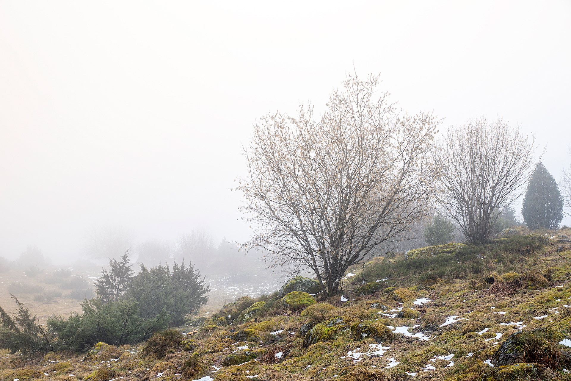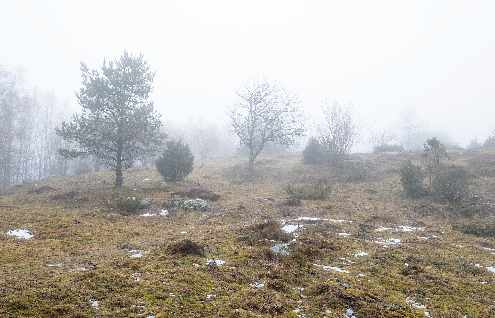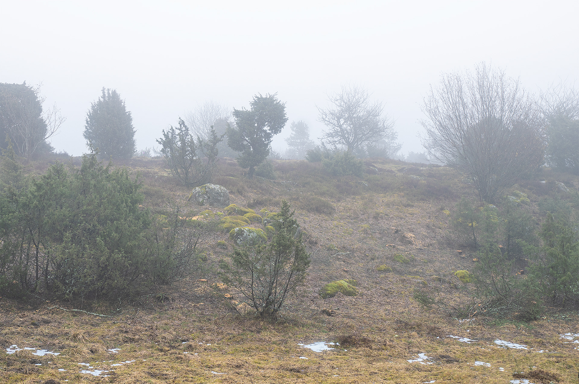I was on a morning walk with the dogs at a table top mountain fairly close where I live. When we got there it was a thick fog it was amazing, like another world.